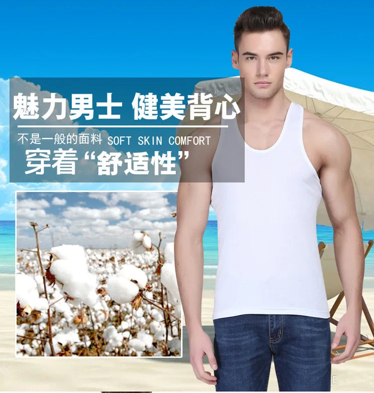 On Sale Men Vests Cotton Underwear Sleeveless Tank Top Solid Muscle Vest Undershirts O-neck Gymclothing Bodybuilding Tank Tops